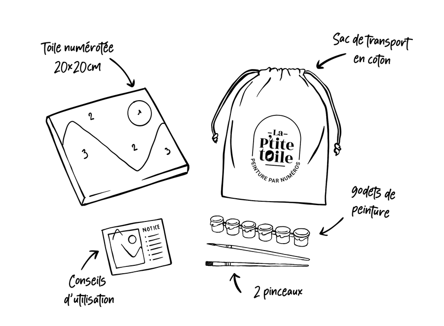 Le concept Les P’tites Toiles est né dans le Morbihan. Création des illustrations, impression des toiles, sacs et étiquettes, remplissage des godets de peinture… Tout est fait à la main dans notre atelier situé entre Vannes et Ploërmel.